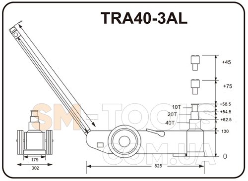 Ход штока: 62,5мм (40т), 54,5 мм (20т), 58,5 мм (10т)