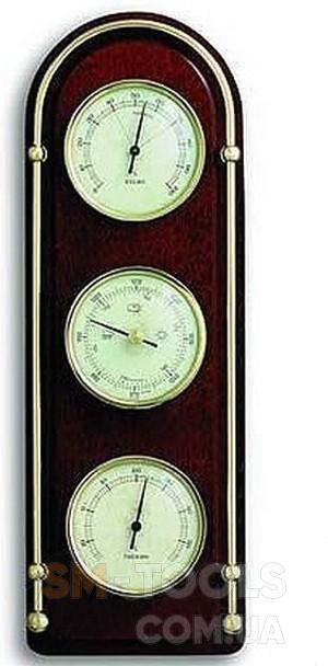 Используется внутри помещения, измеряет атмосферное давление, температуру от -10°C до +50°C и относительную влажность воздуха от 1 до 100%. Настенная установка. Диаметр циферблатов: гигрометр — 70 мм; барометр — 80 мм; термометр — 70 мм.
