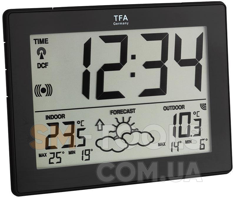 Многофункциональная стационарная метеостанция выполненная из тонкого черного пластика. Имеет монохромный LCD-дисплей. Измеряет температуру воздуха внутри помещения - диапазон измерения от -10°C до +40°C; измерение внешней температуры - от -40°C до +60°C. Прогноз погоды с тремя пиктограммами и индикатором направленности погоды. Есть функция фиксации Min/Max значений температуры. Измеряет влажность от 20% до 99%. Одновременно можно использовать до 3-х датчиков, радиус действия до 100 м. Настольная и настенная установка метеостанции. Питание метеостанции — от батареек 3 х 1,5 V AAА. Беспроводной датчик работает от 2 х 1,5 В батареек АА.