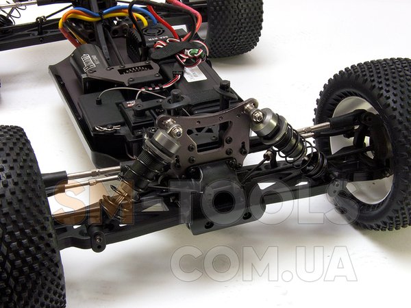 Шасси в моделях Himoto E8 хорошо сбалансировано и укреплено металлическими деталями. Главная пара шестерен - металлическая. Мощные амортизаторы, качественные дифференциалы, шины со специальным протектором и сильная рулевая машинка обеспечивают абсолютный контроль над моделью на любой местности. Влагозащищённая электроника не боится ни воды ни грязи, как и положено настоящим внедорожникам. Сердце машин - мощнейшая бесколлекторная система для класса 1/8, которая питается от Li-pol аккумулятора 11.1В (поддержка до 14.8В!) и позволяет разгонять их до 80 км/час.