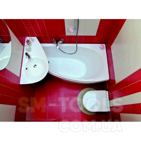 Это наибольшая с наименьших ванн, которую смогли вместить в нашем крохотном помещении. Раковину разместили у изножья, как в примере на фото. Ванна очень нравиться, еще непользовались, потому что еще не во всех комнатах ремонт закончили и не переехали назад в квартиру. Позже отпишусь по удобству. -