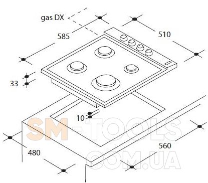 Поверхность оснащена четырьмя газовыми конфорками: двумя стандартными средней мощности, одной мощной конфоркой и маленькой дополнительной конфоркой. Удобное расположение конфорок и большая ширина панели позволяет одновременно готовить блюда в четырех емкостях. Поверхность изготовлена из качественной нержавеющей стали и покрыта черной эмалью.Раздельные решетки изготовлены из эмалированной стали. Для максимальной безопасности и удобства использования производитель оснастил эту модель функциями автоподжига и газ-контроля. Автоподжиг позволяет зажечь пламя легким поворотом переключателя, без использования спичек. Функция газ-контроль контролирует поступление газа, и в случае, если огонь погаснет система автоматически отключит подачу газа.