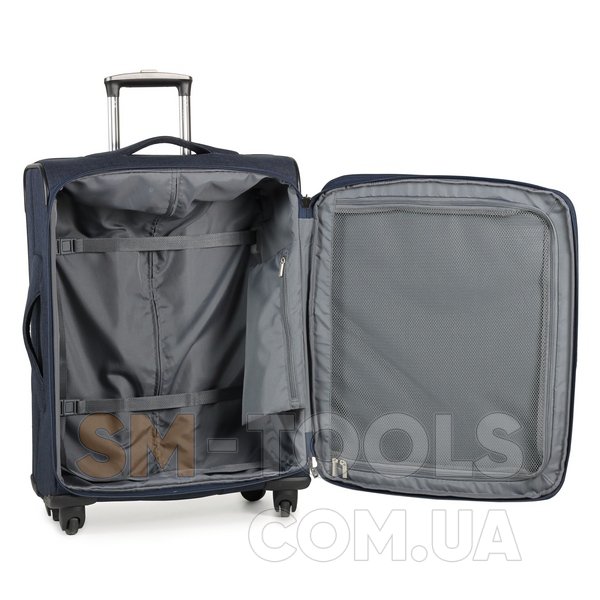 Внутренний клапан выдвигается, позволяя увеличить (уменьшить) объем чемодана с 97 до 107 литров