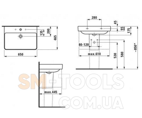 Тип монтажа: подвесной, для установки на мебель, на пьедестал, полупьедестал