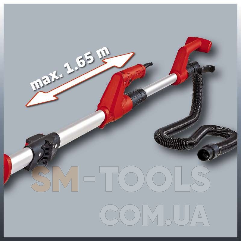 Новая шлифмашина для стен и потолка Einhell TC-DW 225 является универсальным и практичным инструментом для внутренней отделки и ремонта для использования как любителями так и профессионалами. Благодаря мощному 600 Вт мотору шлифмашина для стен и потолка Einhell TC-DW 225 легко справится с шлифовкой стен и потолков, а также удаление остатков обоев, краски, старой штукатурки и т.д. С помощью электронного контроля скорости мощность шлифования может быть скорректирована в зависимости от обрабатываемого материала. Для достижения хороших результатов обработки и комфортной работы, шлифмашина оснащена телескопической ручкой с изменяемыми размерами от 110см до 165cм и дополнительной эргономичной T-образной рукояткой, для работы на потолке без усилий. Рабочий блок инструмента закреплен в подвижном механизме обеспечивающем свободное перемещение шлифовального механизма в любом направлении. Наличие пылеудаления позволяет извлекать абразивную пыль непосредственно из шлифовального диска и засасывать её через шланг в пылесос оставляя чистой рабочую зону без образования раздражающей пыли. Ручка инструмента может быть сложенна пополам для быстрой сборки и демонтажа, а также экономии места при хранении. Шлифмашина для стен и потолка Einhell TC-DW 225 поставляется в удобном пластиковом кейсе для хранения и транспортировки.