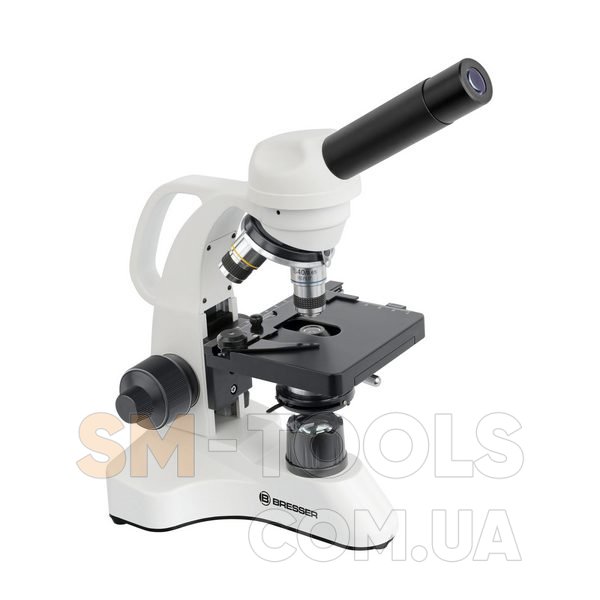 Револьверная головка имеет посадочные гнезда для трех объективов стандарта DIN 4х, 10х и 40х (подпружиненный). Окуляр, поставляемый в комплекте, имеет поле зрения 16 мм и просветляющее покрытие. При необходимости получения больших увеличений микроскоп может быть оснащен дополнительными окулярами и объективами.