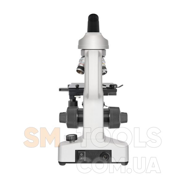 Основным отличием данной модели является возможность работы, как от сети переменного тока, так и от аккумуляторной батареи или от USB. Данный микроскоп относится к полупрофессиональным приборам, позволяя проводить на его базе обучение и ряд наблюдений начального уровня. Важно, что при этом микроскоп обеспечивает хорошее качество изображения, опираясь на которое можно делать обоснованные выводы о результатах наблюдения. Этому способствует применение широкоугольного окуляра и объективов стандарта DIN, а также мощное освещение образца, формируемое диодным осветителем, ирисовой диафрагмой и конденсором Аббе. Корпус микроскопа алюминиевого сплава надежен и, при этом, имеет сравнительно малый вес.