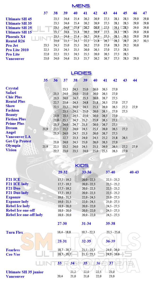 Для удобства пунктов проката, катков и магазинов, на всех коньках сзади нанесено обозначение размера;