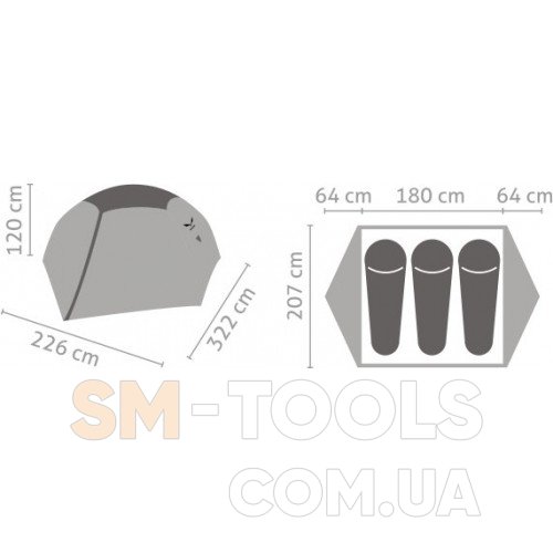 Трехместная легкая палатка с двумя входами и двумя тамбурами. Легко устанавливается, имеет хорошую вентиляцию, а также достаточно просторная и прочная и в то же время - легкая и компактная в сложенном состоянии. Подойдет для пеших путешествий, треккинга, походов в горы, велопутешествий. Специальная серебристая верхняя часть тента отражает солнечные лучи.