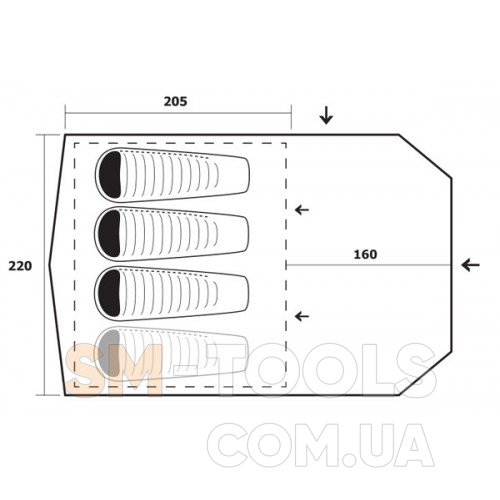 Палатка для 3-4 человек с большой и доступной прихожей, которую можно открыть с двух сторон. Пространство можно использовать для вынужденных ночевок или для хранения велосипедов или багажа. Палатка также пригодна для семейного отдыха. Преимуществом палатки является комфорт и вариабельность использования.