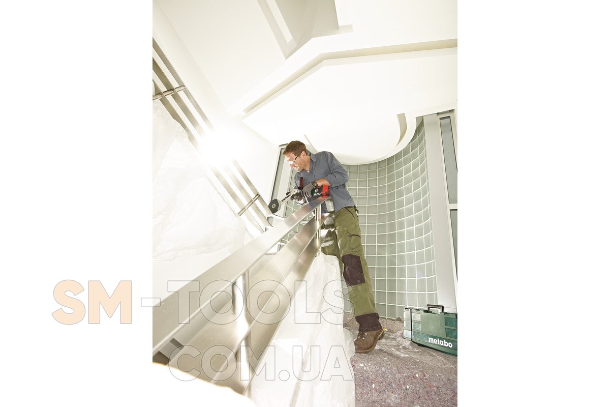Аккумуляторная шлифовальная машина для узких мест Metabo KNS 18 LTX 150 Inox (каркас) - для шлифования и полирования угловых швов, без повреждения соседних поверхностей. Инструмент оснащен защитой от повторного включения и защитой от перегрева, о срабатывании защиты сообщит световой сигнал. Поставляется без аккумуляторного блока, без зарядного устройства!