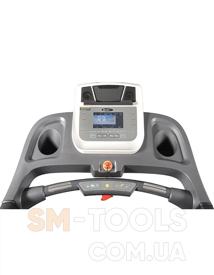 Компьютер: цветной 7' TFT дисплей с воспроизведением видео контента и одновременным отображением множества параметров. Функции: наклон, скорость, дистанция, калории, время, пульс, количество шагов, часы, фитнес оценка.