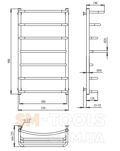 Полотенцесушитель PALADii Триумф 900х530/7 ТД022
