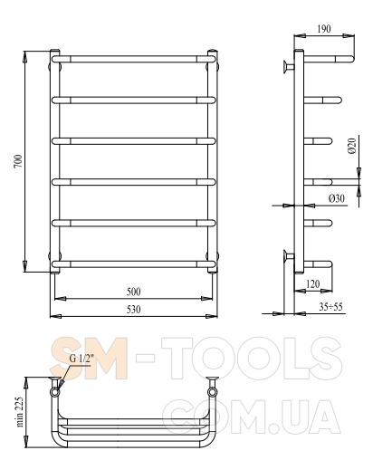 Полотенцесушитель PALADii Омега 700х530/6 ОП022