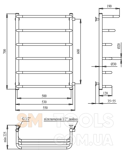 Полотенцесушитель PALADii Омега 700х550/6 R ОП124