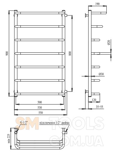 Полотенцесушитель PALADii Омега 900х550/7 R ОП118