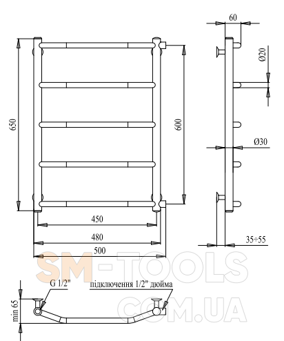 Полотенцесушитель PALADii Классик 650х500/5 РШ092