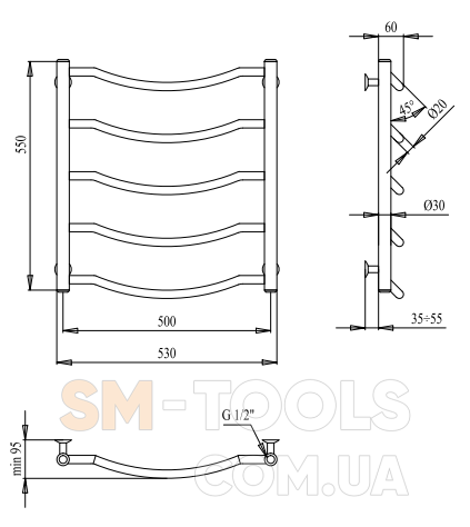 Полотенцесушитель PALADii Смайл 550х530/5 СМу100
