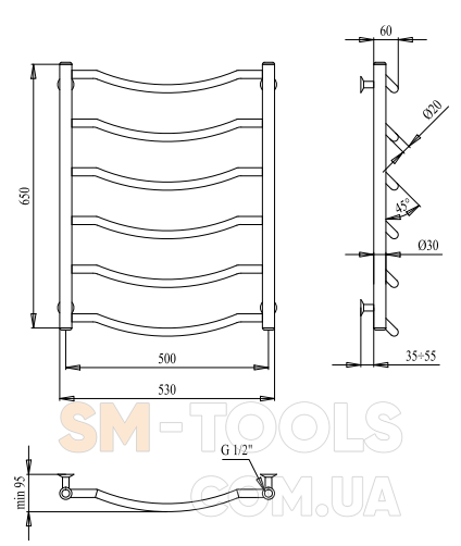 Полотенцесушитель PALADii Смайл 650х530/6 СМу201