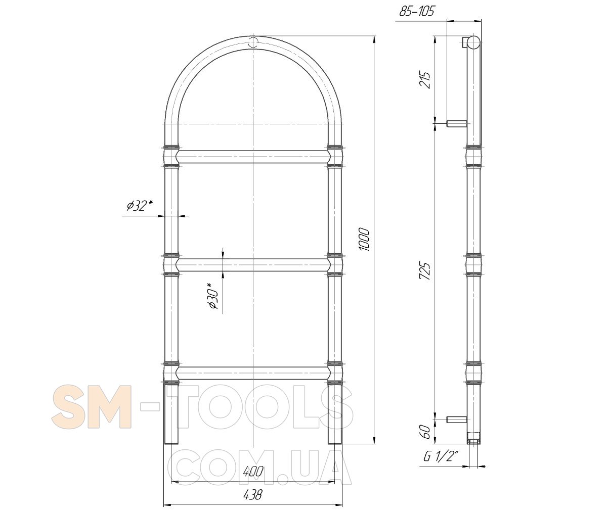Водяной полотенцесушитель Деко 1000х400 с межосевым растоянием для подключения 400мм, диметр подключения G 1/2'' состоит из 3 ребер. Полотенцесушитель Деко производсветнного предприятия Mario изготовлен из нержавеющей стали АІSI 304 может быть оборудован 300W электрическим теном.