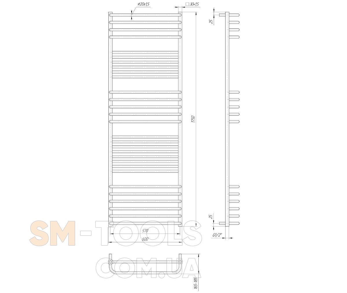 Водяной полотенцесушитель Гера-Люкс 1750х470 с межосевым растоянием для подключения 470мм, диметр подключения G 1/2'' состоит из 29 ребер. Полотенцесушитель Гера-Люкс производсветнного предприятия Mario изготовлен из нержавеющей стали АІSI 304 может быть оборудован 600W электрическим теном.