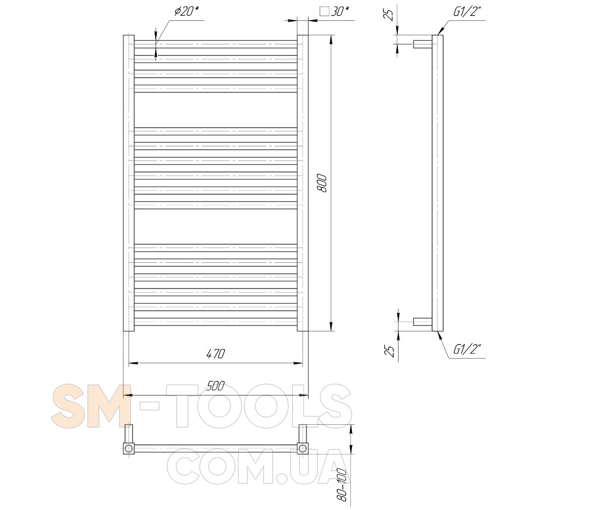 Полотенцесушитель Mario Гера 800х500/470 1.2.0400.03.P