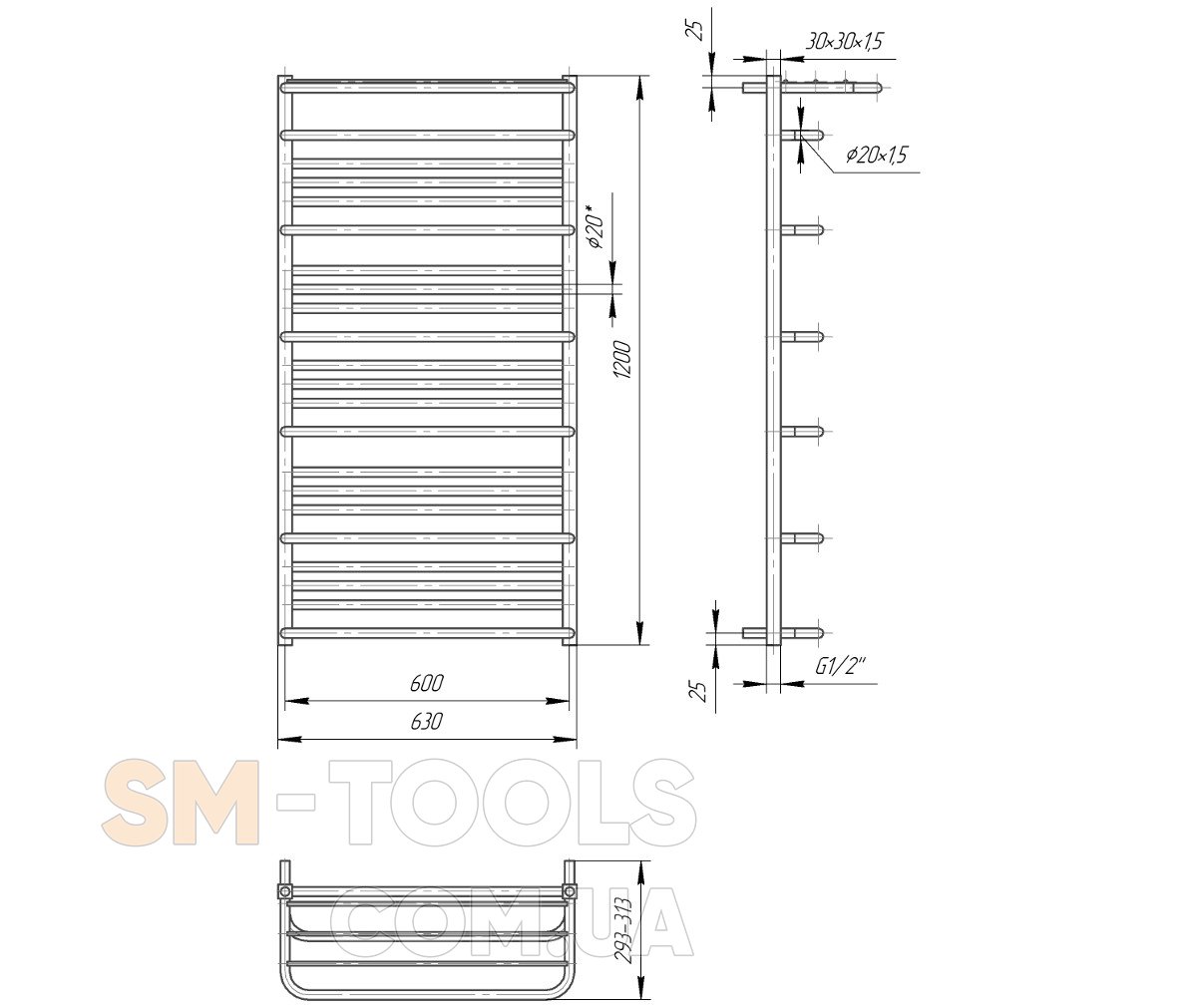 Водяной полотенцесушитель Премиум Люксор 1200х600 с межосевым растоянием для подключения 600мм, диметр подключения G 1/2'' состоит из 22 ребер. Полотенцесушитель Премиум Люксор производсветнного предприятия Mario изготовлен из нержавеющей стали АІSI 304 может быть оборудован 600W электрическим теном.