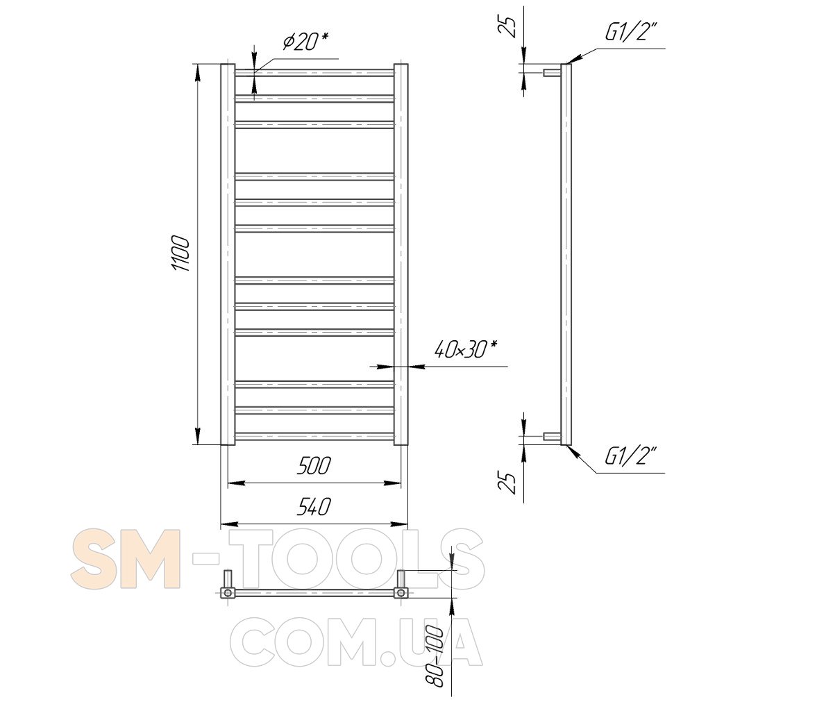 Водяной полотенцесушитель Премиум Классик 1100х500 с межосевым растоянием для подключения 500мм, диметр подключения G 1/2'' состоит из 12 ребер. Полотенцесушитель Премиум Классик производсветнного предприятия Mario изготовлен из нержавеющей стали АІSI 304 может быть оборудован 600W электрическим теном.