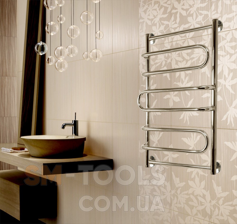 Водяной полотенцесушитель Ница 700х400 с межосевым растоянием для подключения 400мм, диметр подключения G 1/2'' состоит из 5 ребер. Полотенцесушитель Ница производсветнного предприятия Mario изготовлен из нержавеющей стали АІSI 304 может быть оборудован 300W электрическим теном.