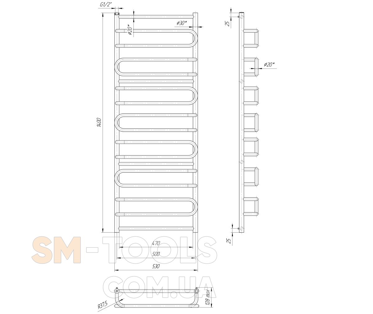 Водяной полотенцесушитель Ница 1400х500 с межосевым растоянием для подключения 500мм, диметр подключения G 1/2'' состоит из 9 ребер. Полотенцесушитель Ница производсветнного предприятия Mario изготовлен из нержавеющей стали АІSI 304 может быть оборудован 600W электрическим теном.