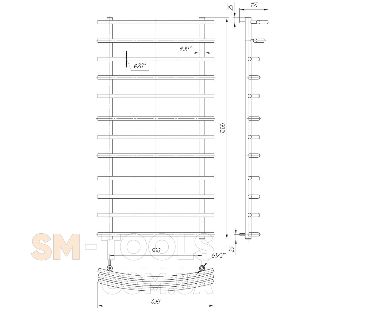 Полотенцесушитель Mario Марио 1200х630/500 1.1.0703.01.P