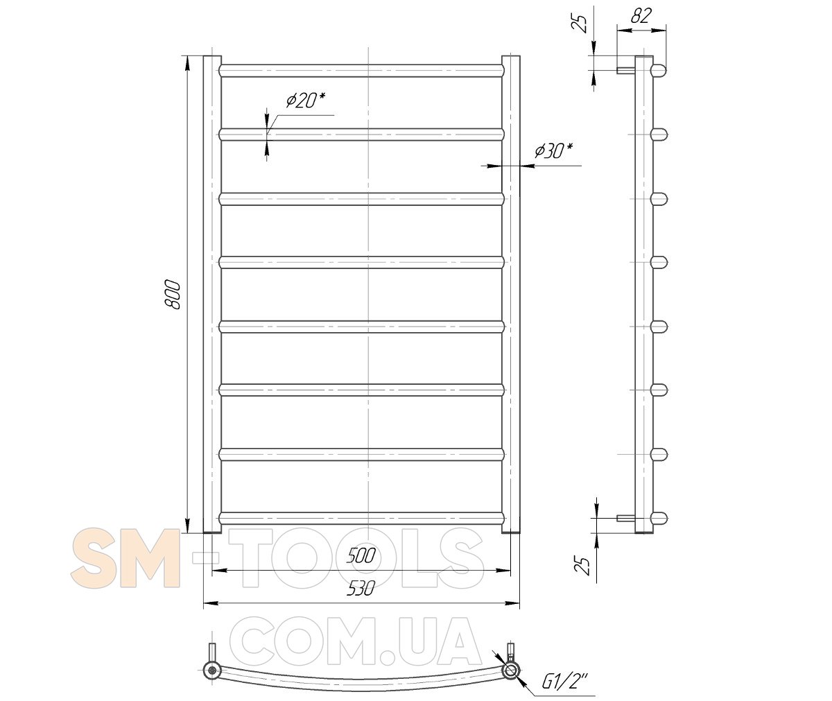 Полотенцесушитель Mario Классик 800х530/500 1.1.0107.01.P