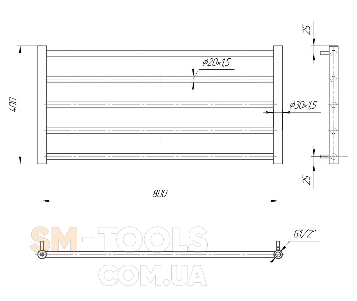 Водяной полотенцесушитель Классик Сити 400х800 с межосевым растоянием для подключения 800мм, диметр подключения G 1/2'' состоит из 5 ребер. Полотенцесушитель Классик Сити производсветнного предприятия Mario изготовлен из нержавеющей стали АІSI 304 может быть оборудован 300W электрическим теном.