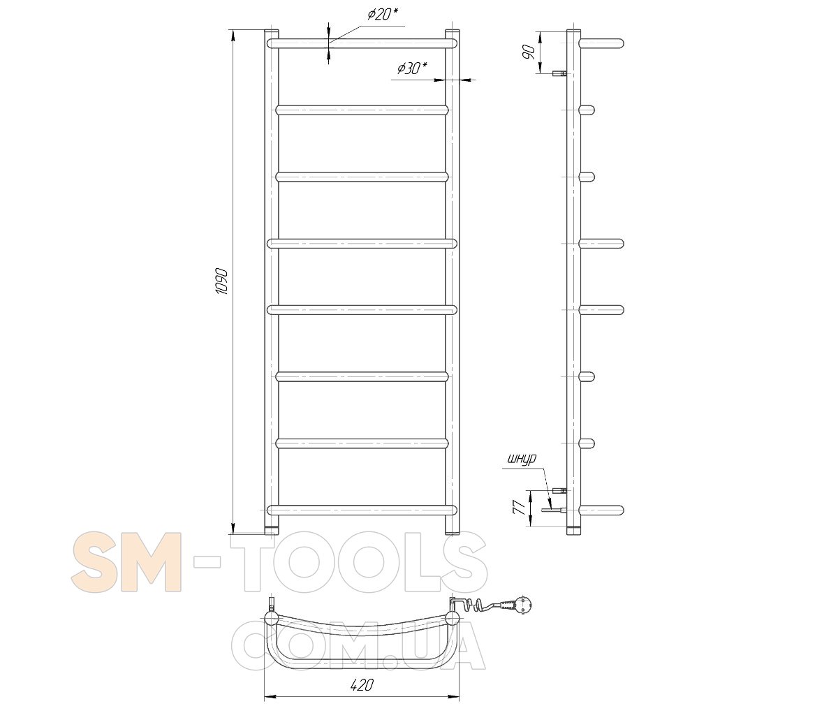 Полотенцесушитель Mario Люкс НР-І 1090х530/150 2.3.0302.10.P