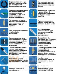 За многие годы работы с батутами мы выделили важные моменты, которые улучшают батут, делают его еще более безопасным, устойчивым и выносливым, и реализовали все это в батутах VIP Black. Именно благодаря времени, отзывам от наших клиентов мы разработали улучшенный батут. Он создан для тех, кто привык пользоваться товарами только самого высокого уровня.