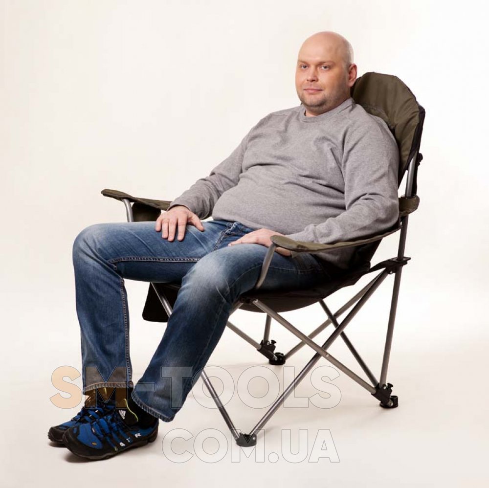 Широкое, удобное и мягкое кресло идеально подойдёт для крупных рыбаков. Выдерживает нагрузку до 130 кг. Оснащённое термоподстаканником на подлокотнике, отделение долго сохраняет температуру холодного или горячего напитка; высота подлокотников регулируется. Складное кресло отличается ярким дизайном, а три положения спинки обеспечивают максимальный комфорт.