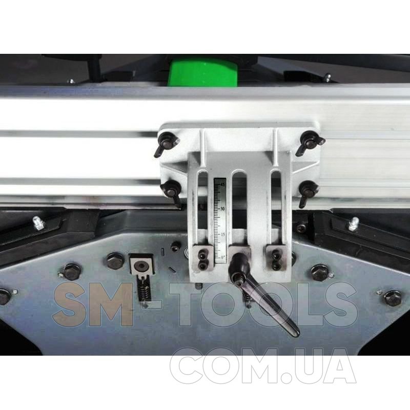 Алюминиевый упор для заготовки может быть наклонен на угол от 0° до +45°.