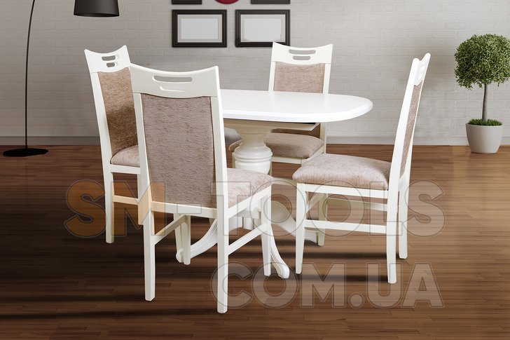 Триумф - раздвижной овальный стол для гостиной из натурального дерева с элегантной точеной ножкой. Торцы стола красиво зафрезированы и окрашены. Столик изготовлен из массива натурального дерева (каркас и ножки). Натуральная древесина - это материал, который фактически лишен недостатков, потому что она плотная, твердая, красивая и не коробится от влаги и прочих внешних воздействий. Столешница изготовлена из плиты МДФ, покрытой шпоном.