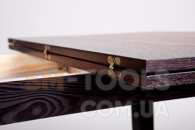 Стол Эрика изготовлен из материалов высокого качества: массива дерева бук и шпонированного дубом МДФ. Обе части столешницы скреплены надежными металлическими петлями.