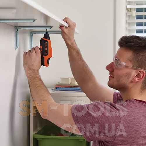 Компактная отвертка для работы в труднодоступных местах с подготовленными соединениями, системой ROTO-BIT (хранение бит "на борту") и магнитным держателем бит / саморезов на корпусе.