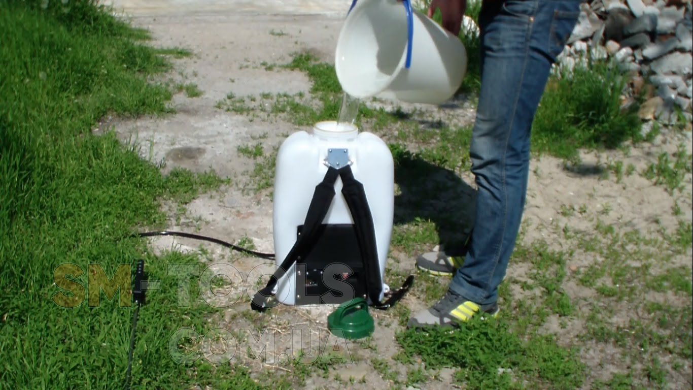 Аккумуляторный опрыскиватель с мембранным насосом. Модель эргономична и практически бесшумна в работе.