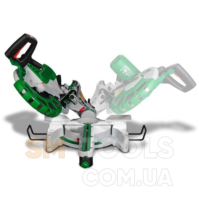 Мобильная торцовочная пила по дереву с двойным наклоном и скосом, протяжкой, плавным стартом и лазерной индикацией линии реза.Подходит для распиливания дерева, пластика, многослойных панелей и профилей из цветных металлов.