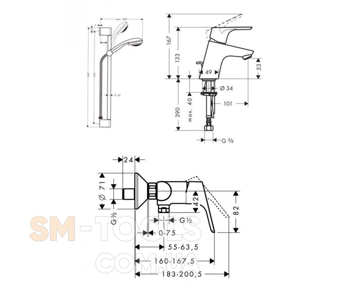 - подключение душа G 1/2
