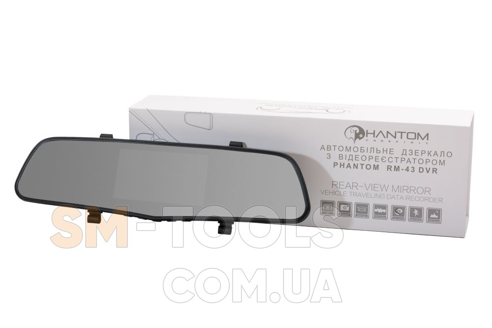 Phantom RM-43 DVR имеет превосходную зеркальную поверхность, встроенный фронтальный HD видеорегистратор, видеокамеру заднего вида с функцией записи и монитор 4,3′′, который служит для отображения сигнала с фронтального видеорегистратора, видеокамеры заднего вида и управления функциями видеорегистратора .