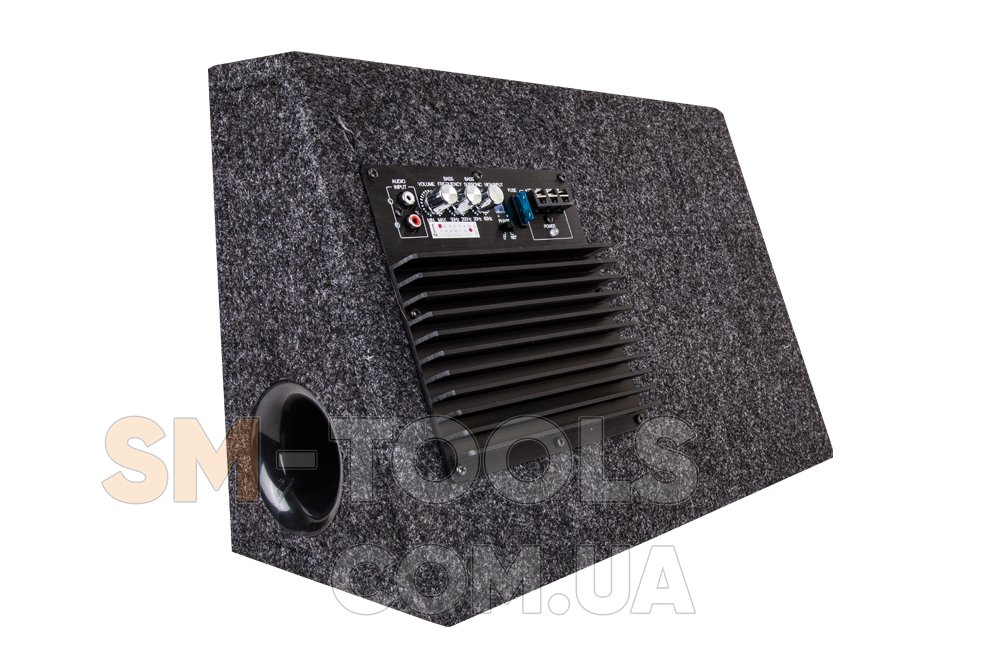 Активный сабвуфер 10″ с диффузором из полипропиллена и подвесом из бутилкаучука мощностью 200/400 Вт.