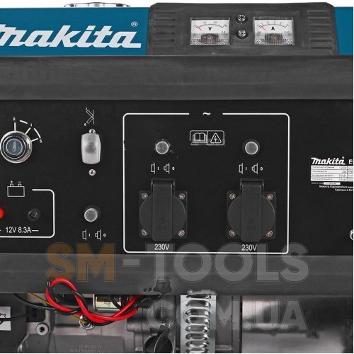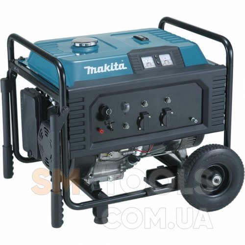 Модель Makita EG4550A не потребует сложного обслуживания, и практически всегда готова к работе. Вместительный топливный бак гарантирует большую продолжительность рабочего цикла, кроме того, при работе устройства осуществляется индикация. Наличие датчика уровня масла позволит защитить двигатель при недостатке смазки, обеспечивая автоматическое его отключение. На панели управления генератора присутствуют амперметр и вольтметр, 2 розетки переменного тока, и дополнительная розетка на 12В, с помощью которой можно заряжать аккумуляторную батарею. Предусмотрена защита от короткого замыкания. Транспортировку генератора существенно облегчают имеющиеся ручки и колеса.