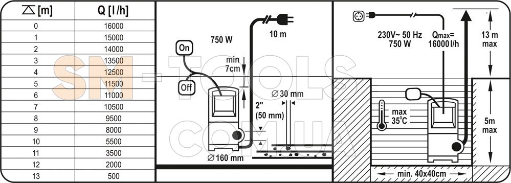 Минимальное сечение скважины: 40 x 40 x 50 см