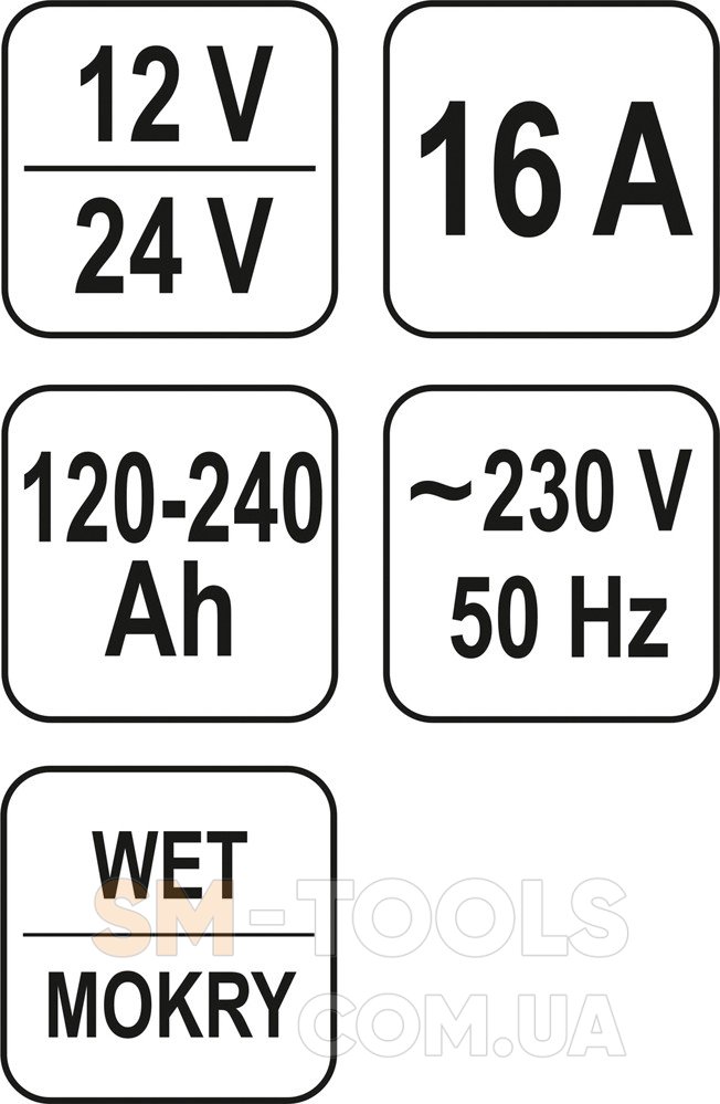 Сила тока зарядки (при 12 В) 16 А