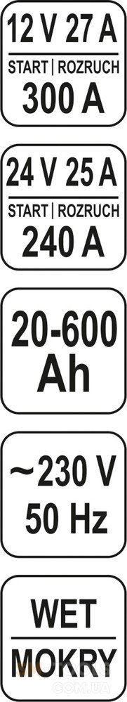 Емкость заряжаемого аккумулятора 20 - 600 Ач