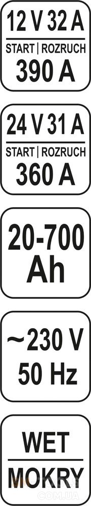 Пусковой ток 12/24 В 390/360 А